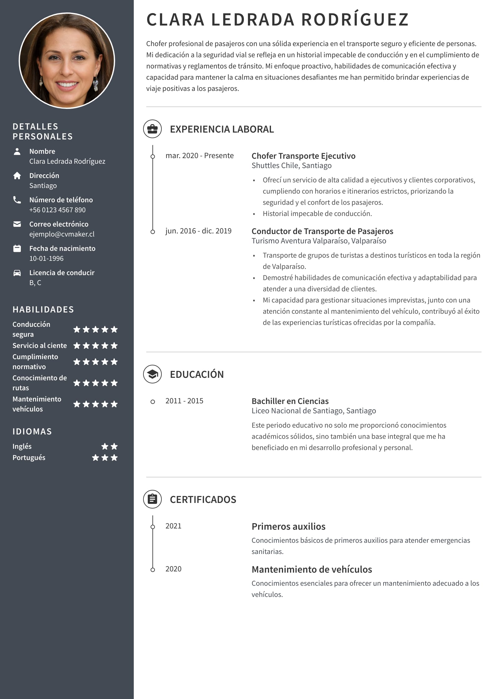 Explora los siguientes ejemplos de CV para orientarte en tu proceso de redacción: